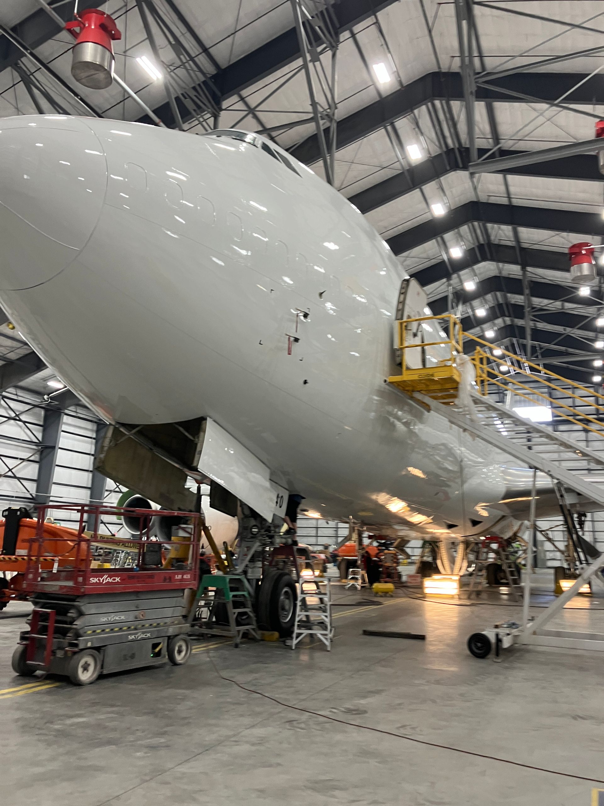 Plumbing installation at hangars built to support Kalitta Air jet refurbishing business.